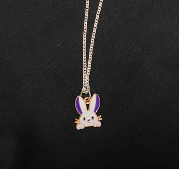 Leap into your day with the bright energy of the Hopping Bunny Necklace. This eye-catching pendant features an energetic bunny rabbit with prominent purple inner ears and a curious expression, crafted in bright enamel. The charm hangs from a neat silver-tone curb chain. The rabbit is a symbol of creativity, fertility, and spontaneity. This piece is a fun, whimsical choice that encourages you to embrace life with enthusiasm and a sense of adventure.